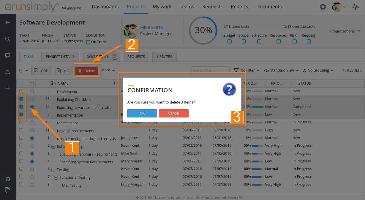 After pressing the Delete button a confirmation dialog is shown 3. Pressing the OK button will delete the selected items.