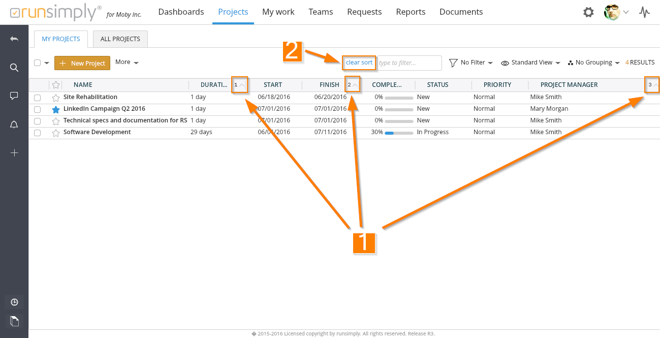 NOTE: When you create your own sorting, that information is remembered by the system so next time you come to the same page, the same sorting will be applied.