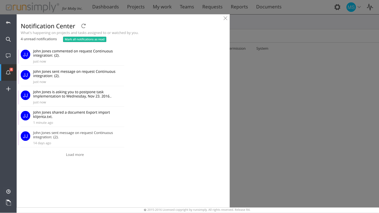 You will get notification if, for example, task is shared with you, or there is change on a project which you manage or, maybe, your request has been reassigned to other user. If you aren't closely following all those items you wouldn't know about said changes and keeping eye on all the things, which might be relevant, is tiresome.