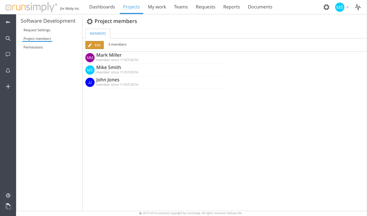 NOTE: Project manager, project admin, and project sponsor automatically become project members.