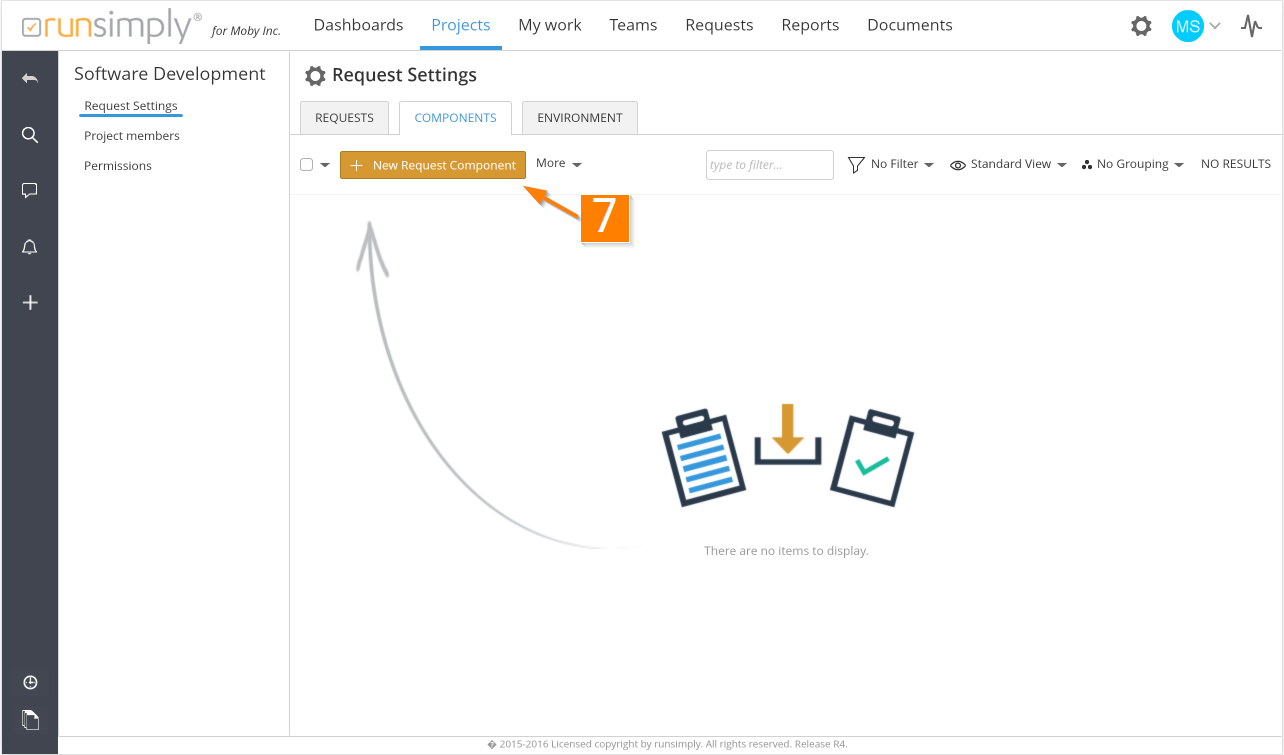 Add new component by clicking on New Request Component button 7 which opens appropriate form.