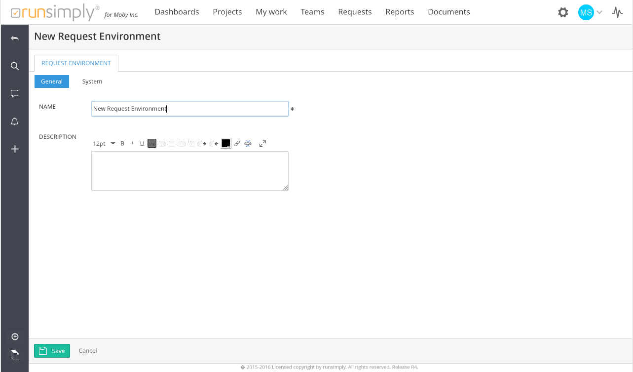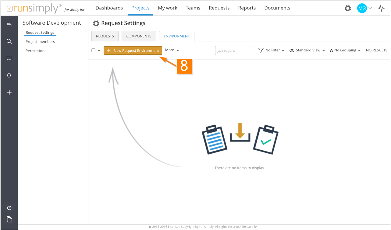 Add Environment by clicking on New Request Environment button 8 which opens appropriate form.