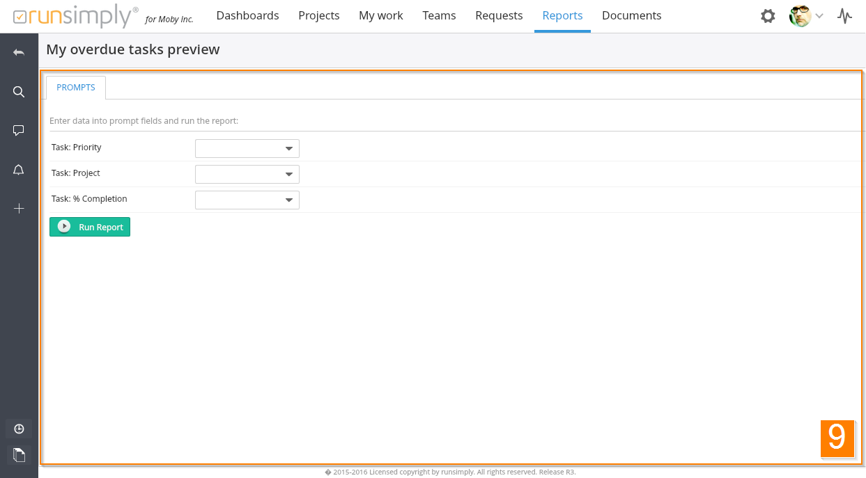 NOTE: If your report contains prompts, you can jump to prompts section even after you have already filled prompts and run the report with these prompt values. This enables you to quickly get the information you need for different kind of data defined by your prompts.