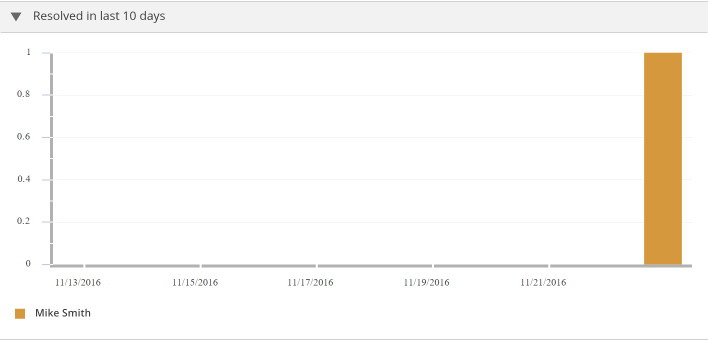 Graph displays number of resolved requests per user in last 10 days for choosen project.