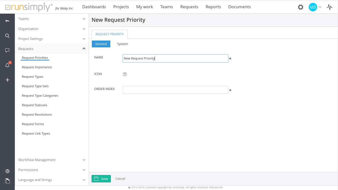 Once you open a list of request priorities you can add a new one by clicking on New Request Priority button 4 which opens appropriate form.