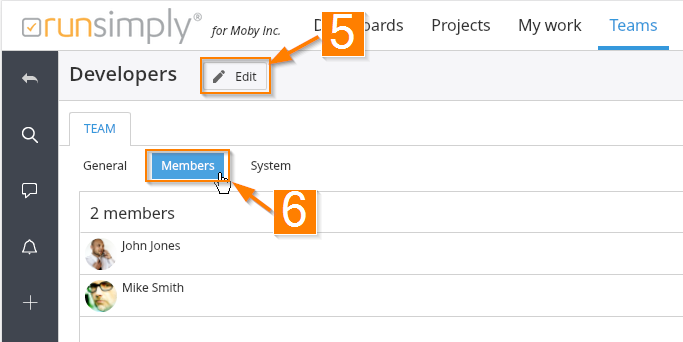 Click on Edit button 5 and then on Members button 6. Which will finally open members section.