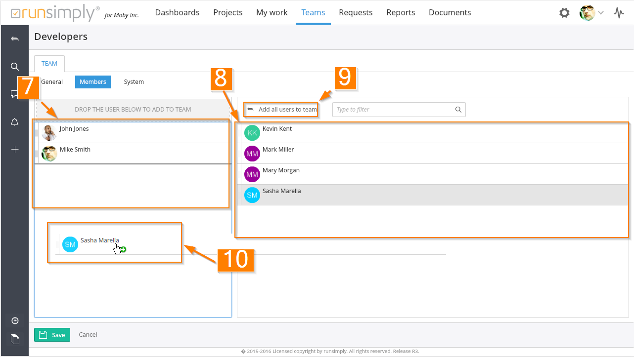 Add users to the list of team members 7 by double-clicking on user in list of users 8.