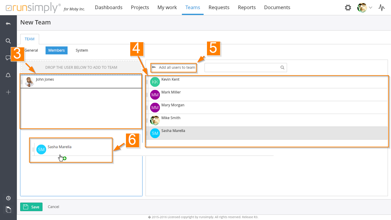 Add users to the list of team members 3 by double-clicking on user in list of users 4.