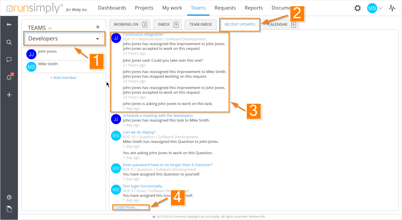 Team member's activities on each issue are grouped and ordered by time of activity 3 and if you woud like to see more activities click on Load more link 4.